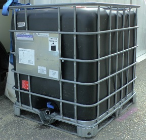 - IBC Totes: IBC stands for “Intermediate Bulk Container.” These are generally larger containers that usually come in 275 or 330 gallon in sizes. You can store more water in these than the previous examples while still being confident that it will be safe to drink when disaster strikes. These are definitely not mobile once they are filled (they weigh a minimum of 2,200 lbs when full) but they hold a lot of water and can be found fairly cheaply. They are used in the food and restaurant business quite a bit. They are often either thrown away once they are empty, or sold on second hand markets (such as on Craigslist). They can usually be found for between $80-$120 used. Just like with used water barrels or drums, please be extremely careful that you do not use one that ever contained anything besides consumable products (such as syrups, sauces etc). If it ever contained any chemicals in the past, it can contaminate your water making it unsafe to drink.
