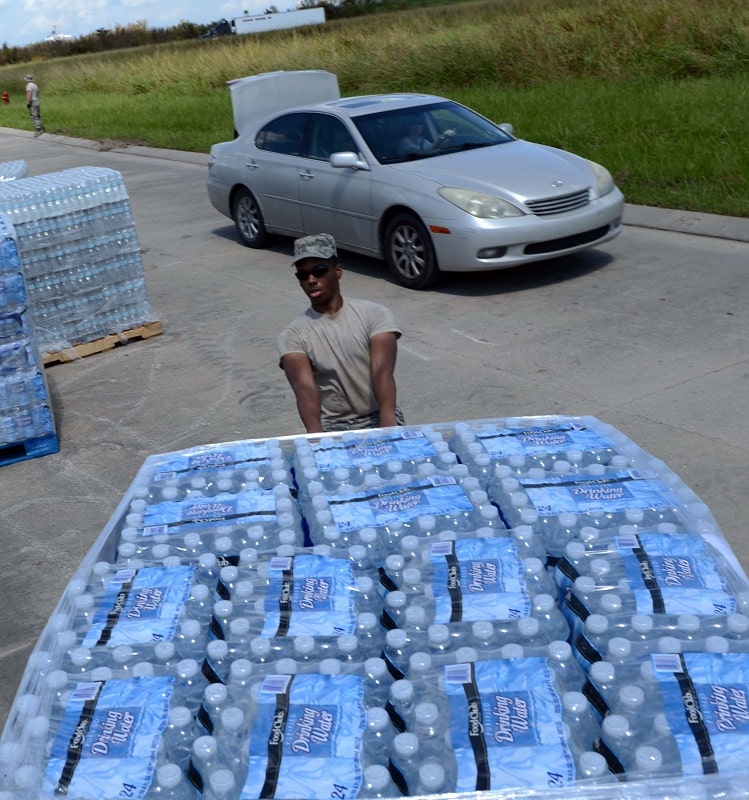 Using smaller containers of water is a great way to prepare for an emergency for many reasons. Anyone can pick up an extra case or two of water next time they are at the grocery store, and in the event that the water needs to be used, having individual bottles is extremely convenient. As an added benefit, if one bottle is damaged and leaks, you wont lose your entire water supply.